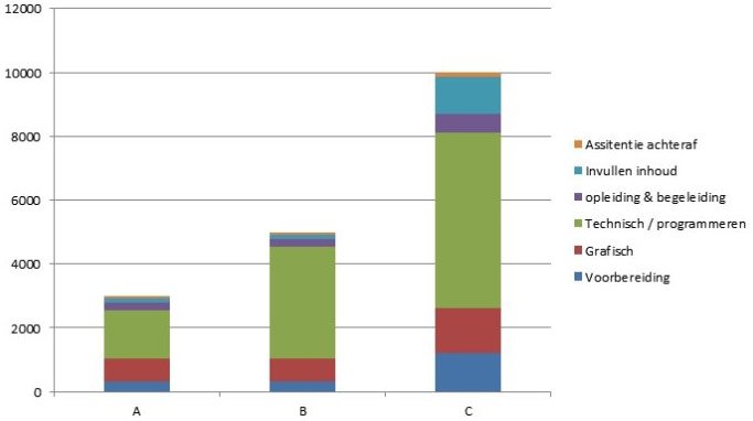 - Het budget wordt gespreid over de website, en de e-marketing om de website te doen renderen