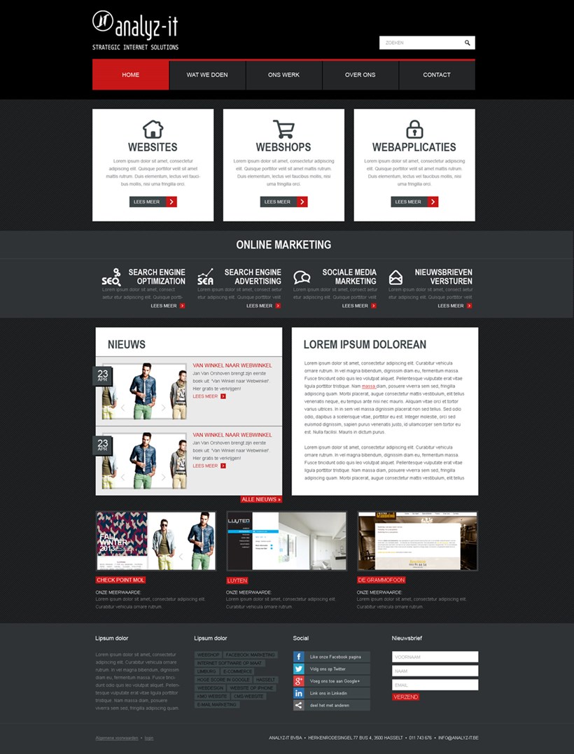 Bij een nieuw pand hoort een nieuwe site. We hadden ondertussen een nieuwe (de derde) versie van ons CMS systeem op de markt gezet en onze site kon niet zonder deze nieuwe technologie. Dan maar opnieuw gekozen voor de 'donkere' huisstijl, een trend die in de volgende evoluties doorgezet werd.