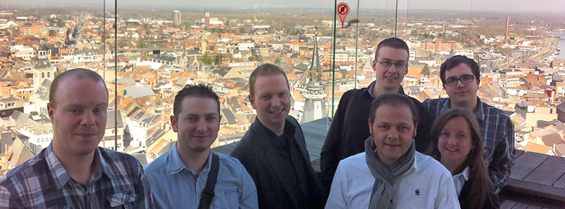 Na deze creatieve escapade werd onze identiteit meer en meer duidelijk. We evolueerden van een 'websitebouwer' naar een 'omzetverhoger door digitale marketing' en van een 'softwarebouwer' naar een 'kostenverlager door technologie'. En zonder het te weten werden we 10 jaar oud. Centraal op de foto zien we Nico, Bert, Jan en Geertrui, allen tot op vandaag nog steeds in dienst.