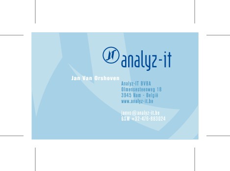 Bij een nieuwe website en huisstijl, horen uiteraard naamkaartjes. We hadden een 'donkere' huisstijl (site en online communicatie) en een 'lichte versie' zoals hieronder op het naamkaartje. Achteraf gezien was deze dualiteit in huisstijl geen goed idee, en zijn we geëvolueerd naar een uniforme, lichtere huisstijl.