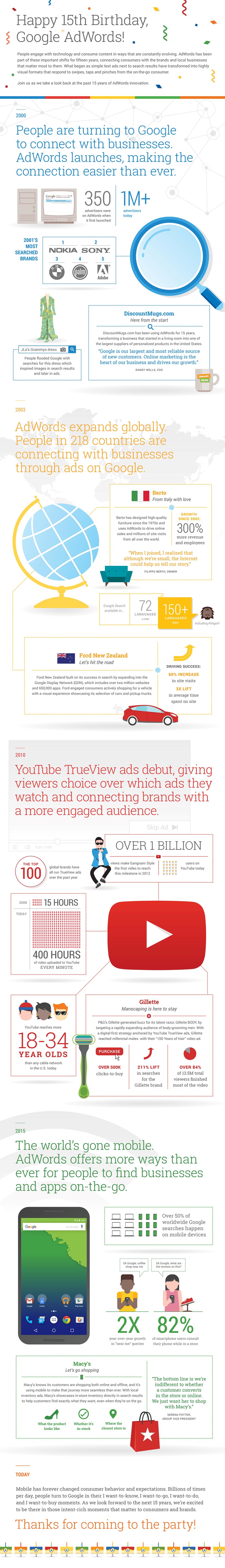 Het verhaal van Google AdWords begon op 28 oktober 2000 met ongeveer een 350 adverteerders. Sinds de lancering werd Google AdWords een steeds belangrijker wordend onderdeel van de strategie voor zowel kleine, middelgrote als grote ondernemingen.