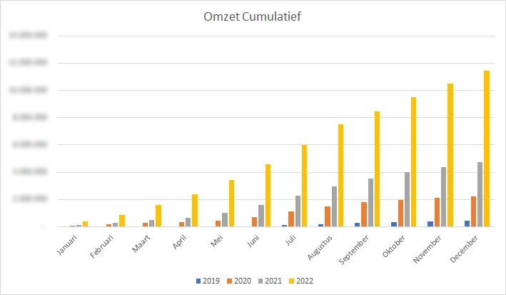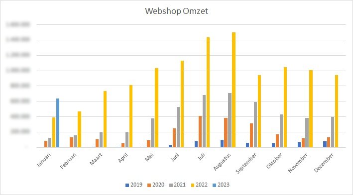 Verder zie je dat januari al zeer sterk gestart is. op 20/1/2023 ligt de omzet al 50% hoger dan in heel januari 2022.