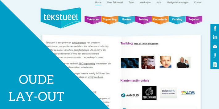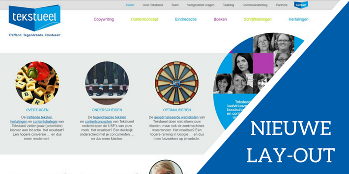 Sara Reymen, zaakvoerster van Tekstueel vertelt over de ommezwaai: "Vorig jaar kozen we voor een rebranding met onder meer een vernieuwd logo en een aangepaste baseline. Eerst dachten we enkele kleine aanpassingen te laten doen aan de bestaande site, maar uiteindelijk gingen we toch voor een grote ommezwaai. We schrijven elke dag webteksten, dus we zien heel wat websites en doen zo veel ideeën op. Onze site was nog niet responsive. Een grondige aanpassing drong zich dus sowieso op. Het design van onze nieuwe site is eigenlijk in niets te vergelijken met de look & feel van de oude site. De kleuren, de lijnen, de vormen, de opbouw … alles past nu beter bij wat we willen uitstralen."