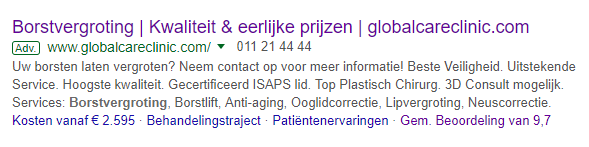 We hebben daarom nieuwe non-branded campagnes aangemaakt en hier zoekwoorden en advertenties aan toegevoegd die niet focussen op de naamsbekendheid van het bedrijf. Zo trekken we namelijk sneller mensen die de naam 'Global Care Clinic' misschien niet kennen.