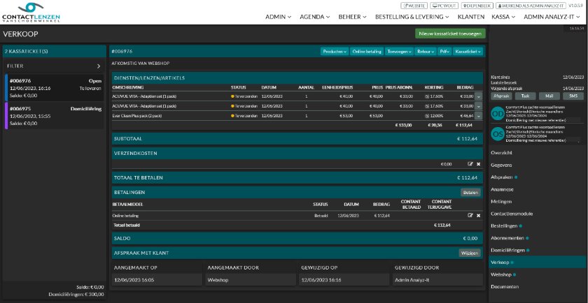 Op de gepersonaliseerde webshop kunnen ze lenzen en producten bestellen die specifiek voor hun van toepassing zijn. Verder komen de online betalingen ook binnen in de digitale kassa, zodat er altijd een totaaloverzicht van de volledige klant is.