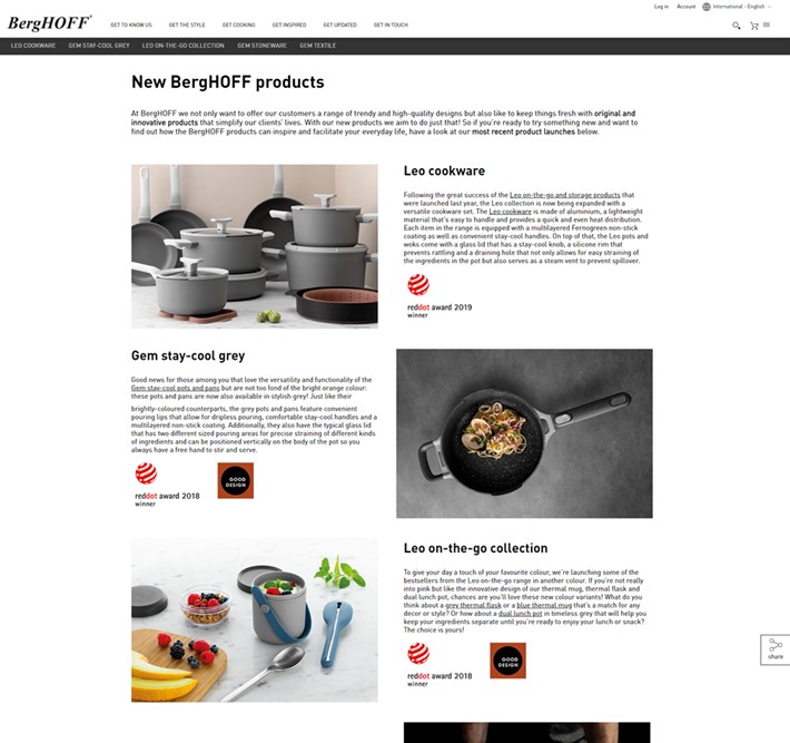 Samen met het marketing team van BergHOFF Worldwide kwamen we tot de conclusie dat we de merknaam "BergHOFF" meer zouden moeten promoten. Vroeger was de website een vrij droge webshop, maar na de redesign kwamen we tot meer beleving van de BergHOFF collecties en artikelen. M.a.w. de ultieme BergHOFF experience!