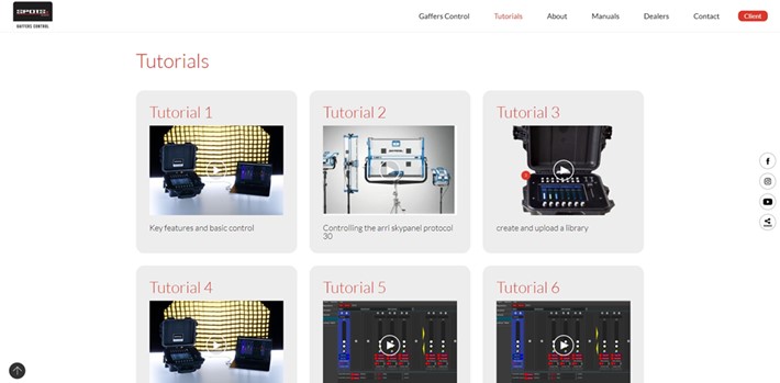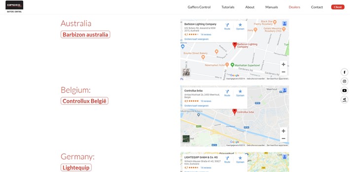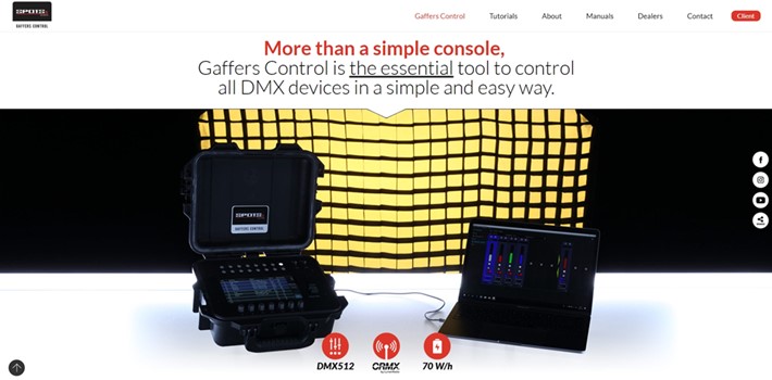 De website dient een duidelijk beeld te scheppen van de functionaliteiten van de Gaffers Control. Niet alleen voor niet-klanten, maar ook voor bestaande klanten. De gebruikers van de Gaffers Control kunnen op de website een uitgebreid overzicht terugvinden van allerlei tutorial video's. Geïnteresseerden kunnen dan weer makkelijk contact opnemen met vertegenwoordigers in steden over de hele wereld.